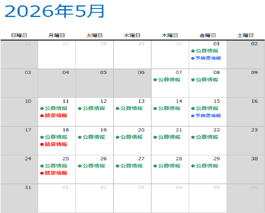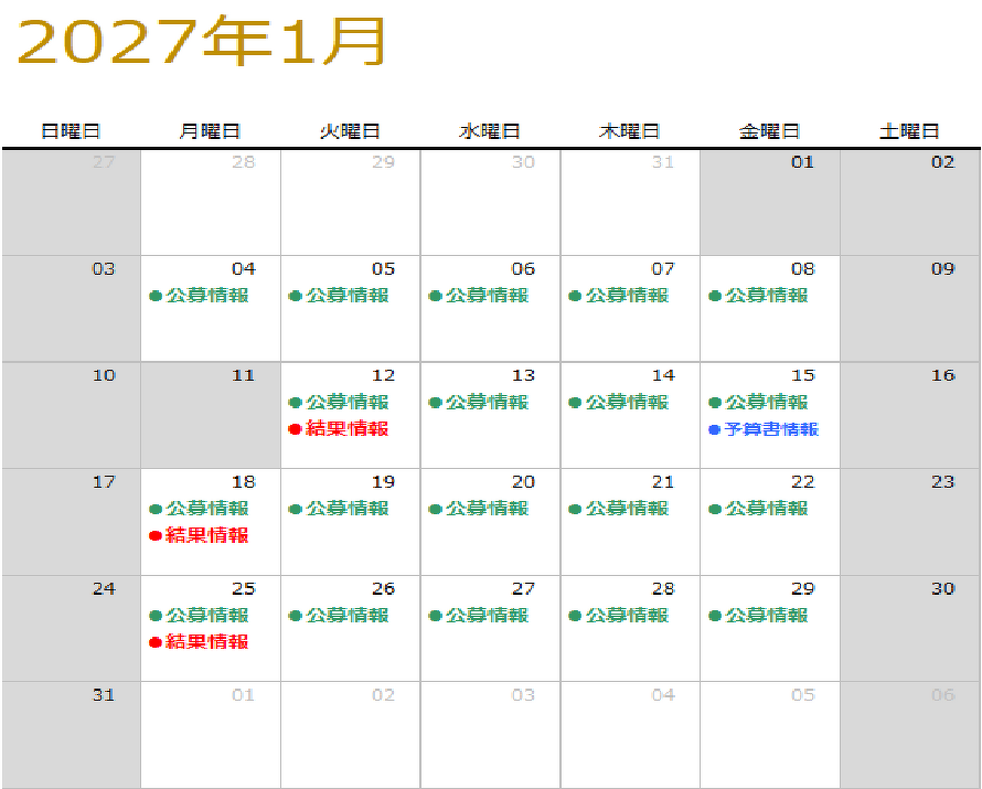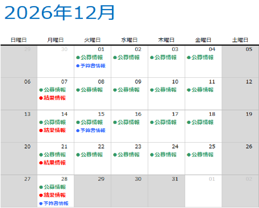 ※予算書情報は、2026/12/28に繰り上げて配信させていただきます。