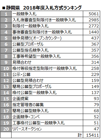 - 記事内の割合や比率は、表で示している各都道府県毎の、入札方式TOP20の件数合計を分母にしております。