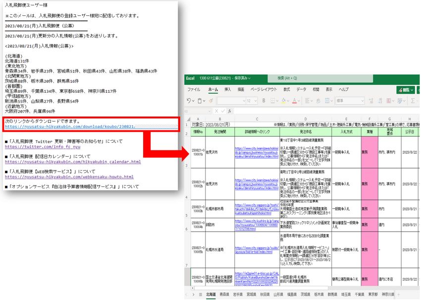 ■入札飛脚便の配信方法が、2023年11月6日より「エクセル添付方式」から「ダウンロード方式」に変更なります■