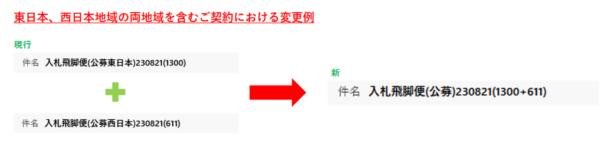東日本、西日本の両地域を含むご契約の場合、件名の中に2つのパターンが表記されます。